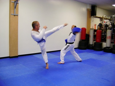 Adult Taekwondo (ages 18 and up)Rhode Island Taekwondo welcomes all adults to start their martial arts journey to and beyond black belt here at our traditional Taekwondo studio. There are many different reasons an adult may decide to begin martial arts training. A number of students begin simply because it is something they have wanted to do since childhood and the opportunity has finally arrived. Some are eager to learn self-defense in order to feel more safe and secure in their lives. Others start training purely for the physical exercise and/or social outlet that training provides. A handful of students are curiously intrigued by martial arts philosophy and spiritualism. Whatever your reason for training, Rhode Island Taekwondo can improve your quality of living and help you attain your goals. Our greatest attributes are our comprehensive belt-level curriculum, firm structure and discipline, and an enjoyable training environment. Adults quickly benefit from the essential components of practical self-defense, protective blocking, powerful striking, traditional forms and vigorous kicking in every class. The belt-rank curriculum offers short and long-term goals through regular belt tests, which foster a sense of accomplishment and strengthens motivation. The high expectations enforced on the mat improve etiquette and encourage communication skills. Strong bonds are formed with training partners as cooperation is a part of every class. The rigorous training provides a physically challenging and disciplined setting for students where they can feel safe and secure as they make progress toward and beyond black belt. Additionally, adults who have advanced forward to the high yellow belt level are eligible to compete in forms and sparring. This opportunity can greatly motivate them, encouraging self-reliance and boosting confidence levels. Other events that our adult students eagerly anticipate are the Paddleball Tournament, Kick-a-thon, demonstrations, and potlucks. Each of these events are held once or twice a year to promote friendship and bonding among training partners. Participation in our Adult Taekwondo program can furnish adults with the courage, confidence and perseverance necessary to exceed and thrive in today’s competitive world. Call (401) 338-7186 today to make an appointment, or come by anytime during regular business hours. |
